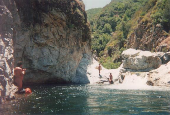 We met everyone at the Arroyo Seco campground southwest of Greenfield off of Hwy. 101 via G16 at 3PM on a Friday. We then had a long discussion on who was going to leave their vehicle and who was going to take everyone else and their gear around to the trailhead campground at Escondido. Everyone wanted to take their vehicle. In the end, the people who ended up leaving theirs where the lucky ones. Finally we had everything settled and started off to Escondido via G14, through Fort Hunter Liggett. About three miles from the campground we stopped at a wide place in the road and had a quick skinny dip to refresh us as it had been a hot day, and some of us had come a long way. The first night was a sort of pot-luck which worked out OK. There was more than enough.