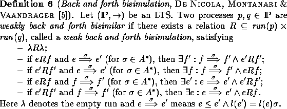 In [5] is has been established that weak back and forth bisimulation equivalence coincides with branching bisimulation equivalence. Hence is follows that