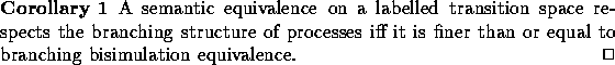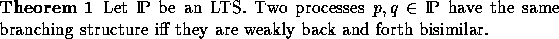 If in Definition 3 the coarsest congruence would be replaced by the coarsest weak congruence, the resulting `branching structure' would have a distinct linear time flavour, as it would be nothing more than the so-called trace set of a process. The coarsest strong congruence on the other hand would on an LTS be the identity relation, causing the branching structure to become the strict branching structure. On an LTS two processes have the same strict branching structure iff they are tree equivalent, as follows immediately from the definitions. Silent actions play no special rôle here.