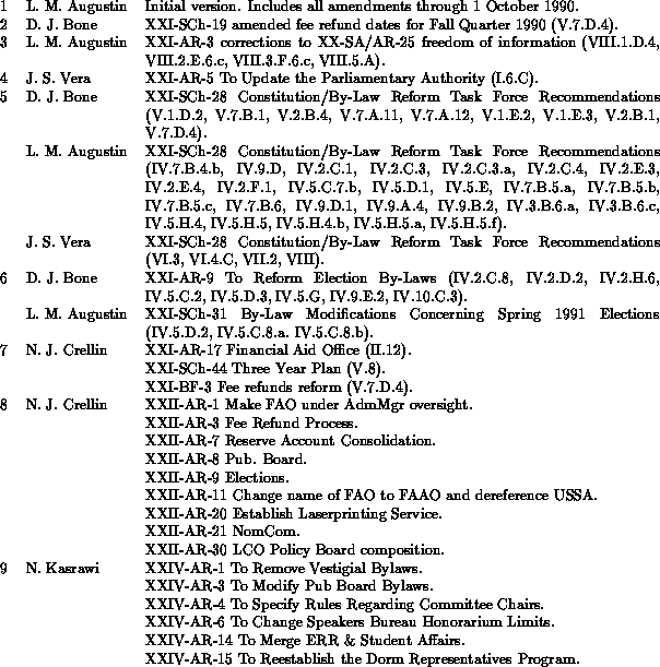 In October of 1990, this edition of the By-Laws was updated to include all amendments approved by the Senate as of October 1, 1990. The revision history was also made an explicit part of the front matter, so as to facilitate the process of keeping this edition of the By-Laws current.